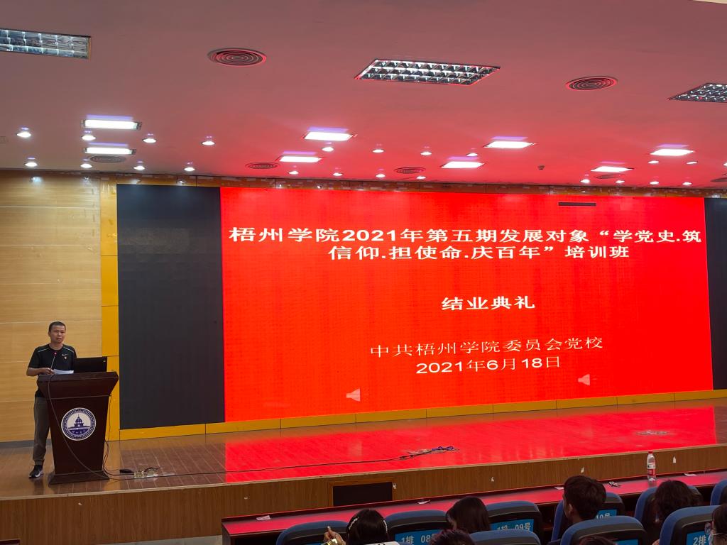6月18日下午18:30,best365网页版登录入口第五期发展对象培训班结业典礼在明理楼学术报告厅举行。商学院党委副书记、党校副校长黄焕克,党建专职组组员、培训班班主任巫汉平出席结业典礼,典礼由秘书部干事汪洋勤主持。