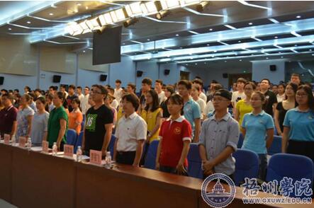 在热情高昂的国歌和充满朝气的志愿者之歌的歌声中,会议正式拉开了序幕。经济管理学院团委书记罗程飞老师致开幕词,他充分的肯定了经管学院志愿者组织所做的贡献,表达了对即将上任的新一届委员殷切的希望,并提出了希望和要求:第一,紧跟形势,积极贯彻执行党的路线、方针和政策;第二,严于律己,做构建和谐校园的先行者和实践者;第三,要牢记责任和使命,继续弘扬“奉献、友爱、互助、进步”的志愿者精神;第四,开展形式多样的志愿服务活动,更好的融入社会,服务社会。