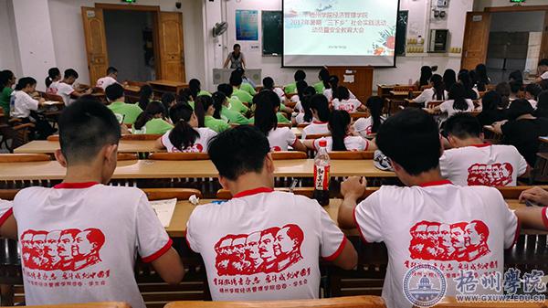 7月5日,经管学院在明理理惑楼S303召开2017年暑期三下乡社会实践活动安全教育大会。经管学院党委副书记唐仁洁,经管学院团委书记罗程飞,经管学院大学生党建服务中心指导老师冼春妮出席了会议,经管学院全体学生党员及团委.学生会和青协全体干部共138人参加了会议。