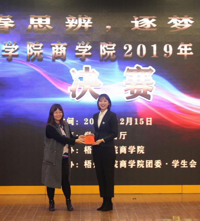 12月15日晚19:30,best365网页版登录入口商学院在明理楼学术报告厅成功举办2019年“青春思辨,逐梦未来”辩论赛决赛。梧州广播电视台综艺节目部主任、梧州中华文化促进公务理事、梧州朗诵专业委员会主任冯宇红、梧州朗诵专业委员会副主任、best365网页版登录入口文学与传媒学院副教授秦廷良、校友工作科科长甘霞、中共best365网页版登录入口商学院委员会副书记黄焕克、共青团best365网页版登录入口商学院学生工作办公室主任、团委书记罗程飞、商学院辅导员钟懿博、杜艳华、肖雅予、谢兵出席本次活动。冯宇红老师、甘霞老师、秦延良老师担任辩论赛评委。