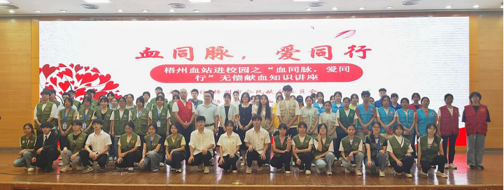 5月25日晚,梧州血站进校园之“血同脉,爱同行”无偿献血知识讲座在明理楼学术报告厅举行,梧州市中心血站党委副书记、副站长叶丽霞、best365网页版登录入口党委副书记卢桂吉、best365网页版登录入口团委副书记彭桂英、梧州市无偿献血讲师邹荣华,以及各二级学院学生代表参加讲座。