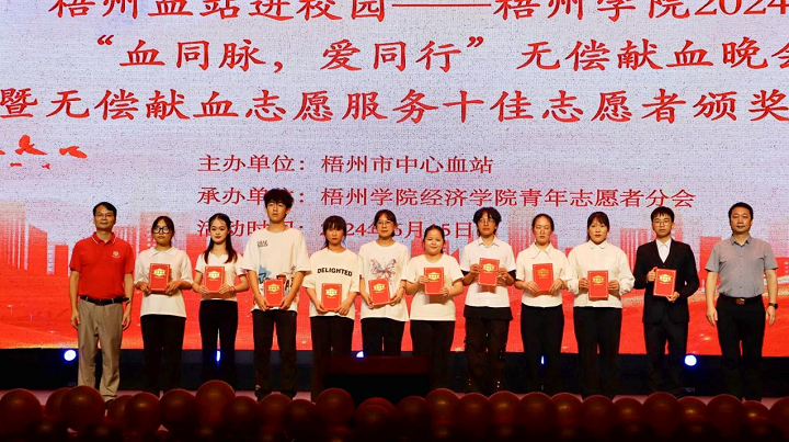 为了提高广大学生对无偿献血重要性的认识,并鼓励更多人参与这项生命接力活动。6月15日,我院青年志愿者分会成功举办了梧州血站进校园——best365网页版登录入口2024年“血同脉,爱同行”无偿献血晚会暨献血志愿服务十佳志愿者颁奖仪式。