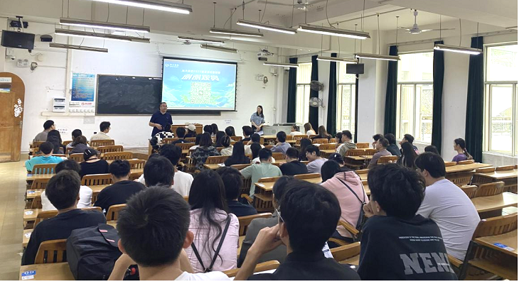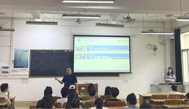 11月2日下午,梧州海大集团应邀在明理楼南楼405教室开展就业宣讲会。海大集团广西大区梧州海大营销总经理农金城先生、人事负责人苏丽霞、学院毕业班辅导员谢兵老师及2025届毕业学生参加宣讲会。